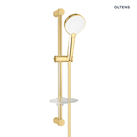Zestaw prysznicowy Oltens Driva EasyClick Alling 60 z mydelniczką złoty połysk/biały 36004080
